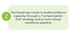 لبناء قدرات القوى العاملة، توصي خارطة الطريق أيضًا باتباع استراتيجية تعويض أولية لتحقيق المساواة، مع دفع نفس الراتب للمعلمين الرئيسيين كما يتقاضى معلمو K-12 الرئيسيون في منطقة المدرسة المعنية بالإضافة إلى حزمة مزايا مدعومة من الولاية. لتحقيق ذلك، سيكون هناك حاجة إلى صندوق منفصل لمساواة الأجور أو زيادة في التخصيص الفردي لكل طفل في مرحلة ما قبل الكي. في ميزانيتها لعام 2024، اقترحت ويتمر زيادة التخصيص الفردي لكل طفل في مرحلة ما قبل الكي إلى 10,342 دولار.