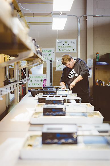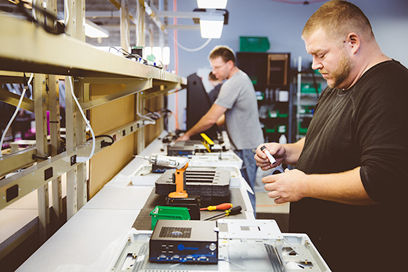 365 Retail Markets is growing its staff, fast. The firm currently has a team of 60 employees and an intern. Fifty five of them work out of the headquarters which is near capacity. Those employees include a broad variety of teams. A manufacturing team assembling the kiosks and displays in the back. A software team designing the next generation of the kiosks in the front. There is a call center team squirreled away in a small office overlooking the manufacturing space.