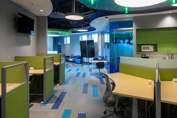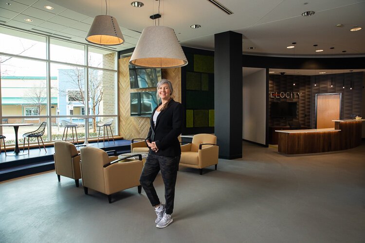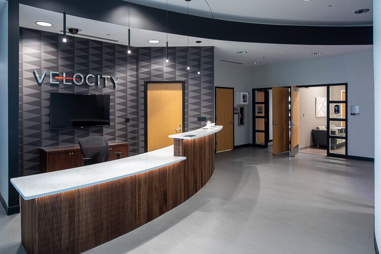 Once Velocity is fully up to speed, Boyle envisions a hive of activity across their 38,000 square feet, including The Element, a co-working space for up to 30 people and where she’s currently posted. They have office suites and spaces for events, classes, training, and meetings.