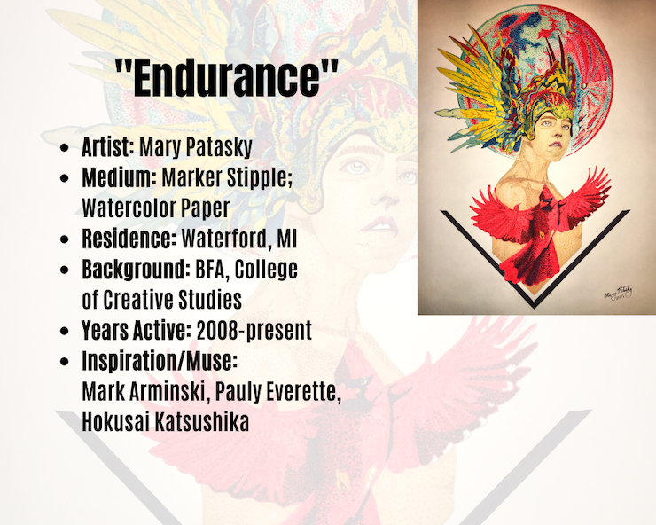 Patasky, whose piece “Endurance” symbolizes the beauty that emerges from hardships, says art is about evoking emotion — not just the aesthetics.