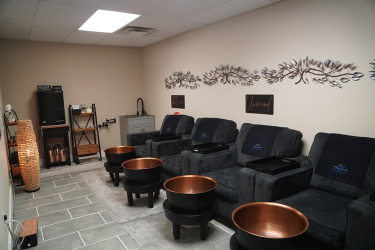 Parish says she offers multiple modalities that are designed to work together, such as her Relax & Restore combos, which pair a salt cave session, red light therapy, or a foot soak.
