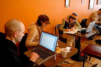 The spread of Wi-Fi –cordless Internet connections– and increasingly powerful laptops have transformed restaurants into offices for a growing culture of independent workers. As Michigan transitions from a brawn-based to knowledge-based economy, traditional notions of workplace are being tossed out the window.