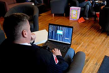 “He was just camped out here with a cup of coffee all afternoon,” says Lowell, estimating that about 25 percent of his customers utilize the free Internet connection.