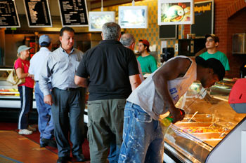 Among the Early American Room’s original chandeliers, pillars and woodwork, an S-shaped buffet beckons guests to slither from fruit to anti pasta to crab claws and shrimp to hot entrees like cheese tortellini in gorgonzola cream sauce. In an adjacent corner, are stations for prime rib, waffles and omelets made to order. It’s befitting of a queen or king, or, at the very least, intrepid visitors to Dearborn.