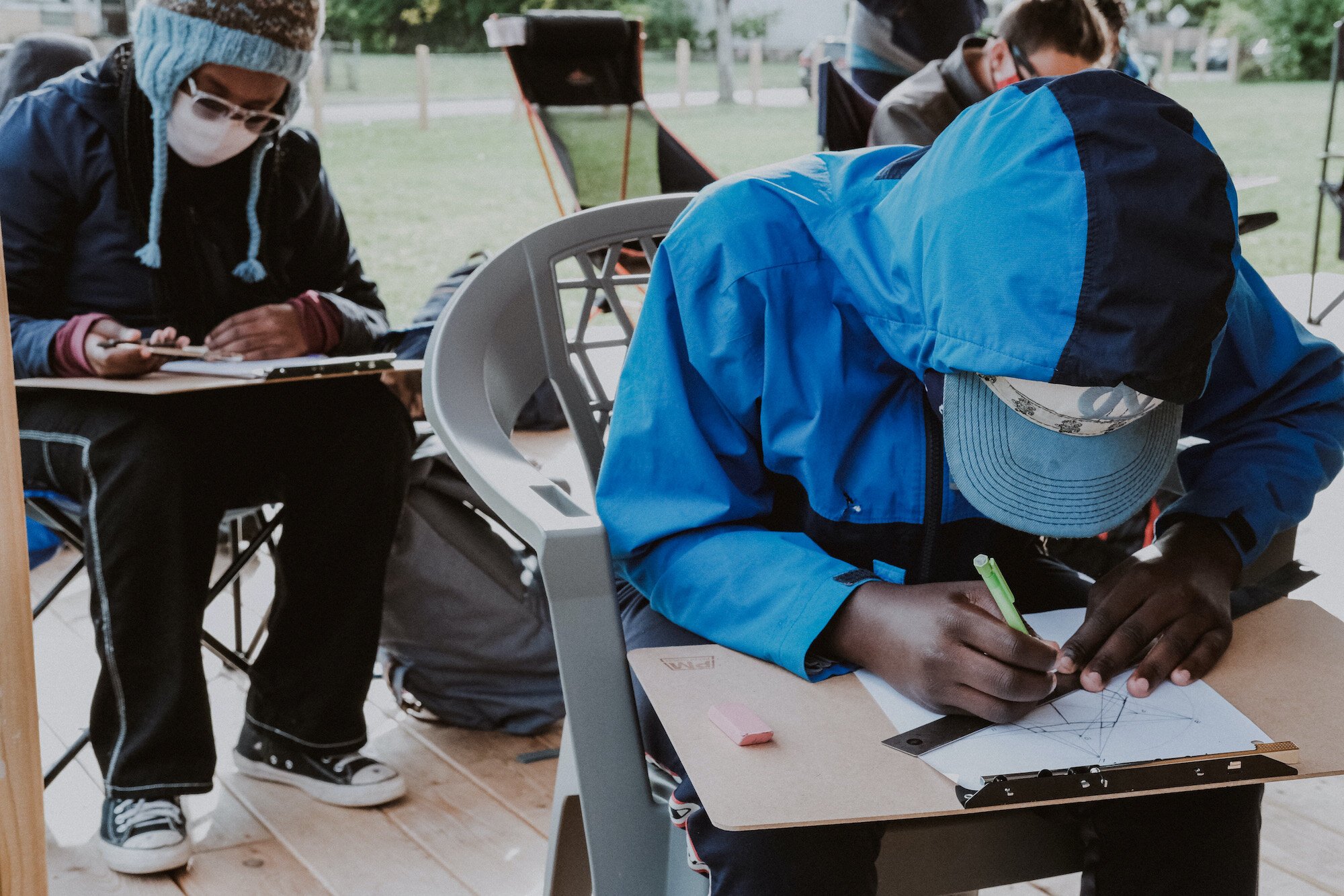 “I thought I would be like, ‘Well, when this is over, I just want to go back inside,” Lailah says. “But, I actually really like it. Now, inside is boring to my whole class. Our teacher will be like, ‘So, we’re going to go inside,’ and we’ll all be like, ‘Awwww.’ I don’t want the masks thing to continue. But I want the outdoor classroom thing to continue.”