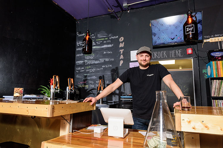 There’s Clownpocalypse, a toasted coconut cream ale born out of a conversation co-owner Eric Benton had about a zombie clown apocalypse. There’s the Pink Tickler, a hibiscus wheat beer that’s also the brewery’s most popular. And there’s a red ale with rosemary, cayenne pepper, and black pepper, a pineapple-rhubarb wheat beer, and a lemon-coriander sour beer, to name just a few. The trio is always working on other unique flavor combinations, testing them out on their all too willing loyalty program members, the Mad Scientist Club.