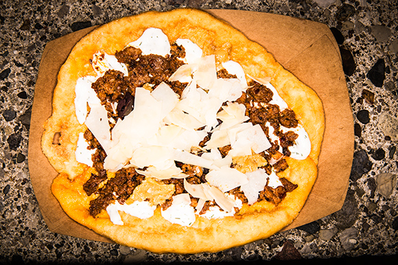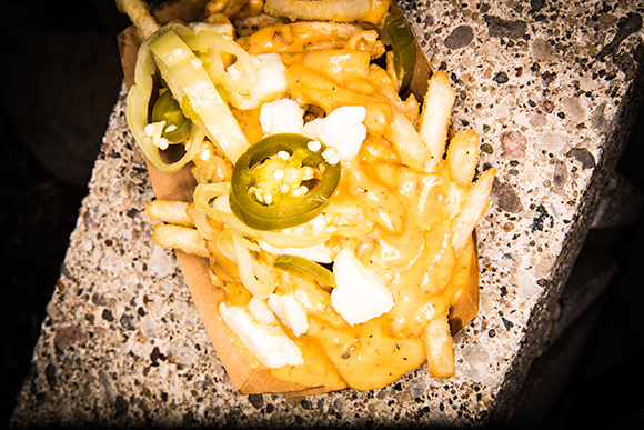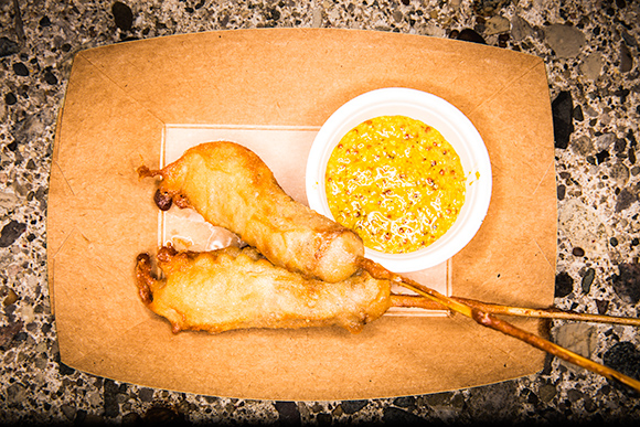 “The Grindhouse is something Zack and I talked about for awhile,” says Branch. After opening a production facility for Corridor in Eastern Market last year, and most recently receiving USDA approval to start wholesaling products to stores, it was time. The Grindhouse, a name that pays homage to Branch’s background in film studies, is an extension of the Corridor brand, utilizing Corridor’s products in an expanded menu that includes chorizo poutine, corn dogs, and Hungarian fried pizzas.