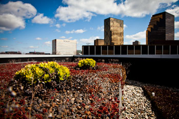 Lawrence Tech students use its green roofs, rainwater collection systems, solar power panels and other eco-minded facilities, such as the Alfred A. Taubman Student Services Center, as living laboratories. The student center was constructed with recyclable materials and has 120 geothermal wells that heat and cool the building. It also has a 10,000-square-foot green roof that controls and reducers water runoff, absorbing water into the roof and sending the remaining into a 12,000-gallon cistern that stores gray water.