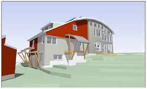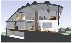 A ranch house in the Geddes Heights area of Ann Arbor is being renovated in such a manner that its net energy usage will be equal to the amount of energy it produces via solar and geothermal production.The Nautilus House, as it has been dubbed, is attacking the energy problem from all sides and, in so doing, a striking home is emerging.The architect, Michael Klement of Architectural Resource and the builder, Doug Selby of Meadowlark Builders, found a creative and inspiring client in sculptor and homeowner Claudette Stern. Stern was interested in sustainability, not afraid of bold design and, in terms of cost, was willing to forego a new kitchen if it meant she could afford a more energy-efficient design.In the expansion of the one-story north end of the home, a curvilinear roof was designed, which will accomplish many things: it maximizes the solar opportunity for the site, will aid in rainwater gathering and will act as a natural vent, instrumental in heating and cooling the home.Other green aspects of the home will include geothermal heating and cooling; the use of structural panels and advanced framing techniques in construction, which will both minimize material usage and maximize the amount of insulation that can be used; and the reuse of materials such as windows.The home will be Platinum LEED-certified as a remodel; the sixth in the nation and second in Michigan to be so recognized. You might recall the first in Michigan: it was a home on Fourth Street that Selby and Klement collaborated on and that Green Space toured. Check out this article to learn more about it.The home will be open to the public for a weekend in January for a “Behind the Drywall” tour; watch this space for details.Source: Michael Klement, Architectural ResourceWriter: Kelli B. Kavanaugh