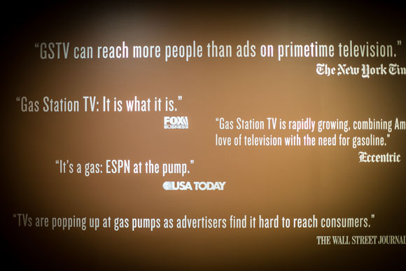 Let's face it, pumping gas is a drag. Not just the price, but the physical act of standing around watching the little LCD monitor add more debt to your credit card. Well, one man's boredom is another man's business opportunity. Enter GSTV, a successful Birmingham company that wants to put a TV at every gas pump.