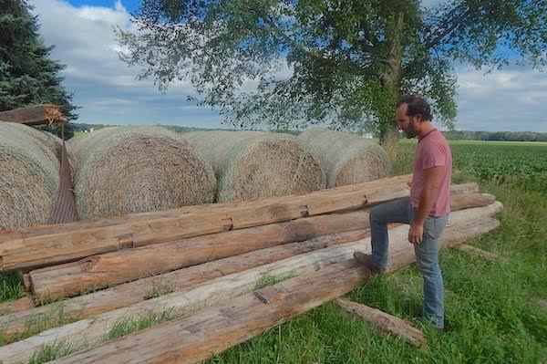 Walter Wasacz – Hocking next to wood from a barn that he will add to his boat installation