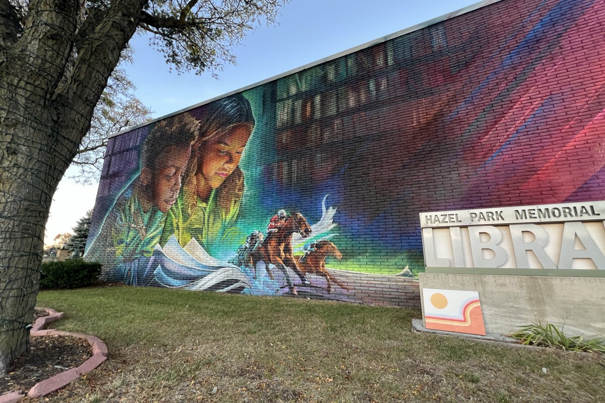 There’s a spirited competition among metro Detroit communities vying to be accepted into the program, which grants only a few murals each year. Barbara Winter, who serves on the Hazel Park District Library board, has been applying for the program ever since its launch in 2018. When the library found out that it had been accepted earlier this year, community outreach by way of a public survey commenced. The DIA requires that PIPA recipients reach out to their communities in determining just what it is that the mural will express, and library staff distributed a survey asking residents what themes that they’d like to see in the new mural.