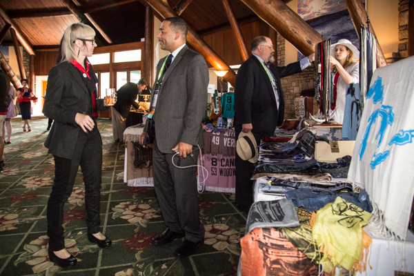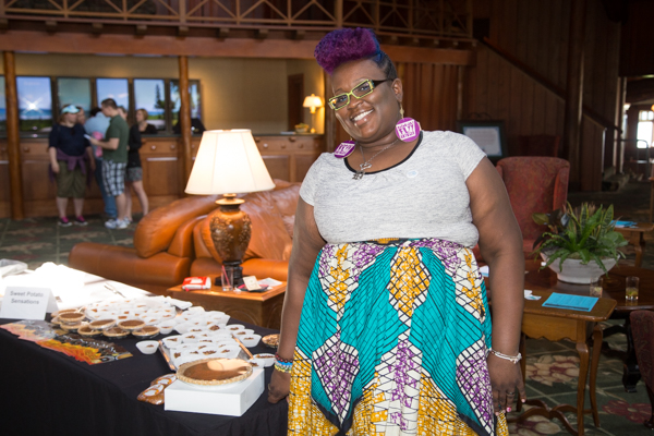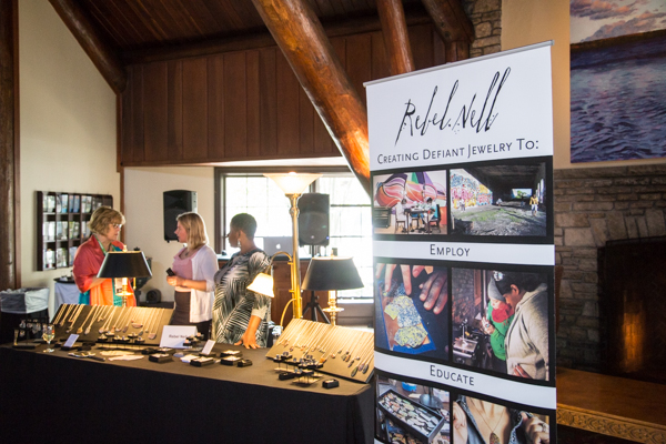 Four independent Detroit companies set up camp at the Mission Point Resort. I brought trunks of sparkly accessories from my own shop, the Peacock Room, a women’s apparel boutique in Midtown. Cyberoptix, a company that has silkscreened nearly 1 million wearables in Eastern Market and is one of the top 10 selling artists on Etsy.com, brought ties and scarves. Sweet Potato Sensations, a second generation Old Redford restaurant and bakery specializing in, you guessed it, sweet potato treats for nearly 28 years, came armed with pies. Rebel Nell, a jewelry company that employs disadvantaged women, four of whom it has helped transition out of living in shelters, brought jewelry made from layers of Detroit graffiti.