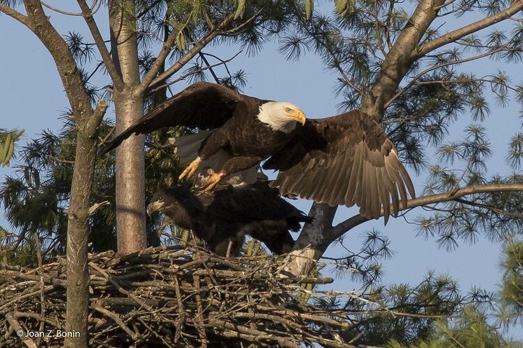 “There is an observation platform to view these birds at a safe distance and the trail is seasonally blocked off during bald eagle nesting time so as not to approach the nest but can be viewed from the platform,” says Champion.