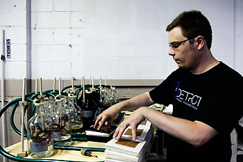 Switlik, another i3 Detroit director, will actually be displaying quite a few projects at Maker Faire: a homemade skeeball machine, a Nerf dart shooting range, and a variety of handmade instruments like a cigar box guitar and a wine crate bass. Perhaps the most impressive of these, however, is the Beer Growler organ.