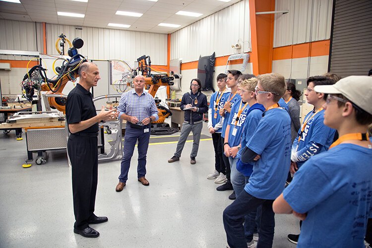 Robert Young, a simulation supervisor at KUKA Systems North America, is standing at the head of a conference room table, leading a presentation on how the company validates robotic motions through a computer simulation program. But he isn’t demonstrating his work to a room full of customers or factory floor supervisors. Young’s audience is a room full of high school freshmen, ninth-graders from the Utica Center for Science and Industry (UCSI).