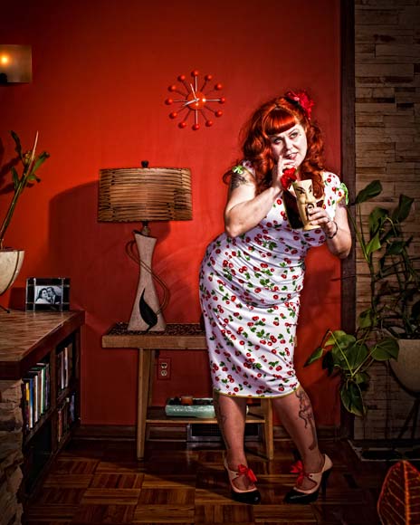In a show called “Female Trouble” (which had a domestic woman theme), Sprocket Hole (née Karie Nora, another SPAG alum) walked around with a fake pregnant belly, smoking and drinking and getting dirty looks before “giving birth” to an octopus onstage. Polly Glamorous is also a fire performer and incorporates “vintage clown erotica” into her acts. At this year’s Theatre Bizarre, the burlesque stage was made to look like the Devil’s head and the girls all danced on his tongue. You’ll see glove peels and tassel tosses, stand-up and sketch. “It’s family friendly if you have the right type of friendly!” LaMoan says.