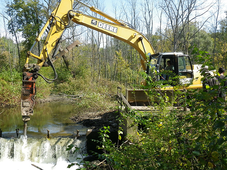 One of the impairments in the River Raisin has been a reduction in fish populations. A series of old, often obsolete, dams meant fish from Lake Erie had only a limited stretch of the river available to them for spawning habitat. So a project was undertaken in 2012 to remove or modify eight dams.