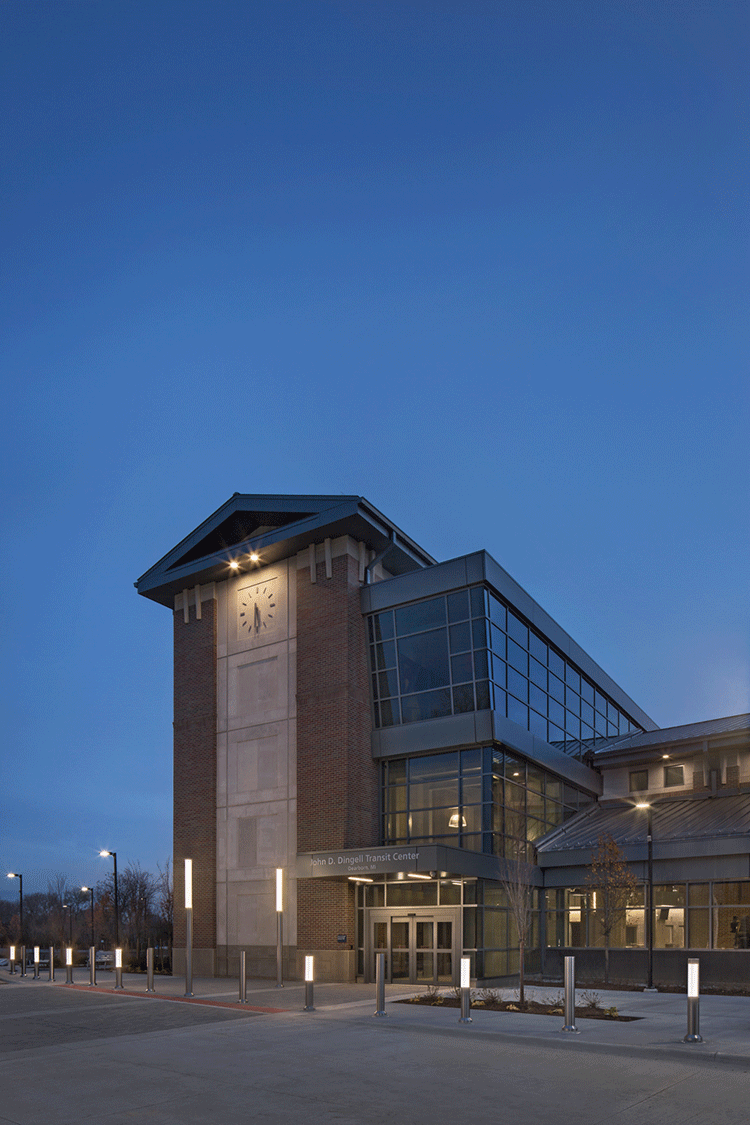 John D. Dingell Transit Center, the train station that services the Amtrak passenger rail service and SMART buses.