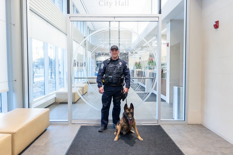 “It’s an extensive process,” Meier says. “When we look at a handler, we’re looking at the years of service of the officer, the maturity level of the officer — because this is a 24-hour-a-day, seven-day-a-week job. When Officer Lawless leaves work, that dog is going home with him. We’re looking at what kinds of decision-making he has. He’s going outside the community and working in other jurisdictions, so he has to have the experience and maturity to know what he’s doing and make the decisions necessary to do it.”