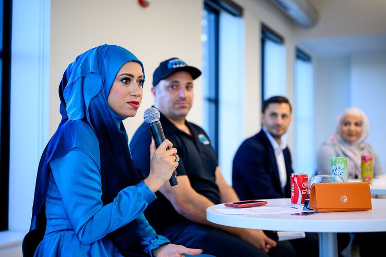 Steve Koss – Amanda Saab, Zee Shami, Sam Haider, and Sam Abbas discuss the future of Dearborn Resturants, and food within the community at a Dearborn City Open (image taken before the COVID-19 pandemic).