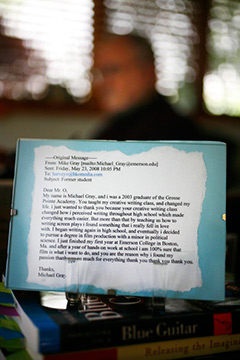 Some are already in the process of doing just that. One Oshinsky intern found a job as a personal assistant to Drew Barrymore when she came to Michigan to film Whip It! Other former interns and students now have a foothold in the industry and are asking for second looks at some of his award-winning scripts. That’s part of the reason why Oshinsky his earned a reputation as a story whisperer in the film industry, and his company has scored a mantle full of trophies, like an Emmy and Peabody awards.
