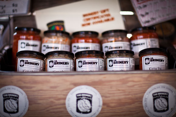 The Brinery specializes in sauerkraut (fermented cabbage), and is currently the only artisan sauerkraut producer in the state. Klingenberger also makes kimchi (a traditional fermented Korean dish that can be made from cabbage, radishes and cucumbers), pickles, and will soon be making miso. He uses the natural lacto-fermentation method to pickle his products. “It’s an old, ancient style of naturally fermenting with wildly fermenting bacteria.”