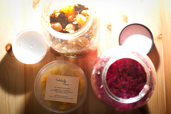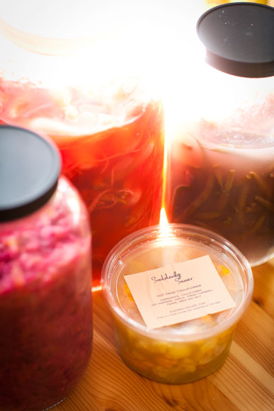 Lacto-fermentation is the same process by which milk becomes yogurt. Blair Nosan of Detroit-based Suddenly Sauer also uses this method for her products, which includes yogurt, butter, cream cheese and ice cream, in addition to classic dill pickles, squash kimchi, dilly beans and hot head cauliflower from locally-sourced produce.