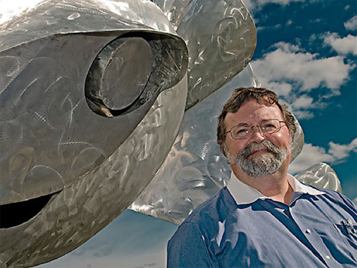 David Crumm in front of a sculpture by Douglas Gruizenga – Doug Coombe