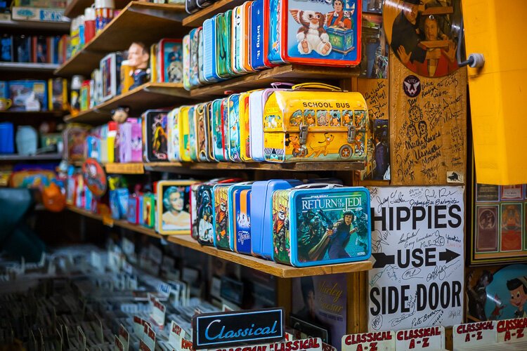 “Most of the kids that come in aren’t looking into brand new artists,” he says. “They’re into classic rock — the Beatles, the Doors, Hendrix, Led Zeppelin, Pink Floyd — which is something we cater to, but we also have a pretty cool punk collection. And there’s a decent sized metal selection [and] I have a lot of soundtracks, surf, garage, and lounge music.”