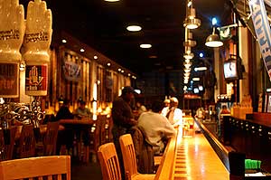Our first stop: Atwater Block Brewery. No Rivertown evening would be complete without a moment at this mammoth restaurant/pub, known for its in-house beers and casual atmosphere. We’re both dressed in workday-wear – suits – but nobody seems to care. It’s a Wednesday night so the place isn’t packed, but it’s hardly empty: two separate groups of a half-dozen or so each sit crowded around the restaurant’s light-wood tables, and a couple sipping half-full glasses of dark-colored brews are cozied-up at a four-top a few feet away. There’s some open space about 15 feet away from three loners perched at the bar, so we pull up two stools there.