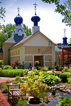 It’s one of those rare, shining and crisp Detroit spring mornings and Mapquest has hosed me a little bit. And so here I am, windows rolled down, driving down block after block of side streets, clocking modest working class bungalows in the east side enclave of Harper Woods, thinking I’ve imagined my quarry. Just as the descending addresses are about to signal yet another wrong turn, it appears: A grand, sprawling and climbing hand-crafted wonderland-cum-sanctuary – the St. Sabbas Russian Orthodox Monastery, announcing its presence. It’s true. Tucked away into this otherwise run-of-the-mill, slightly-down-at-the-heel neighborhood is an authentic, working monastery celebrating and keeping alive the milleniums-old traditions of Christianity’s most ancient lineage. The compound sprawls over seven acres of property, including two main lots, where the monks have converted former homes into the church itself, a library, living quarters for the monks and, perhaps most notably, a gourmet-quality restaurant called the Royal Eagle. But it also encompasses a temporary woodshop across the street and a parcel of land set aside for future use (more on that later).