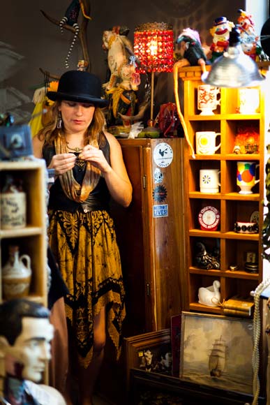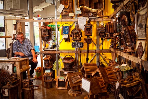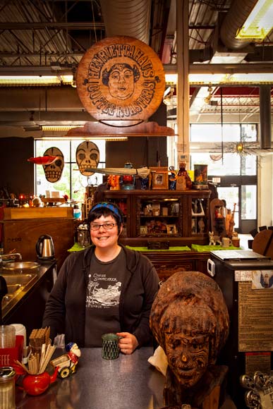 Gail Mash is a spiritual teacher and tarot reader. She sells crystals and geodes at the market as well as offering tarot readings and counseling. She’s a bit of an anomaly amidst the artists, crafters and collectors. But the energetic atmosphere drew her in, and it’s been a successful venue for her. “The space has paid its rent every Saturday before 2 p.m.,” she says. “I think people are more open here — when you like art or music and beauty you’re more receptive.”