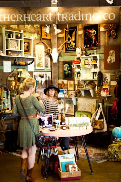 The vibe is like a party at your coolest, most creative friend’s place. Music blares, people congregate on couches, and everyone from fine-art photographers to a spiritual counselor/tarot reader display their wares at visually arresting tables.