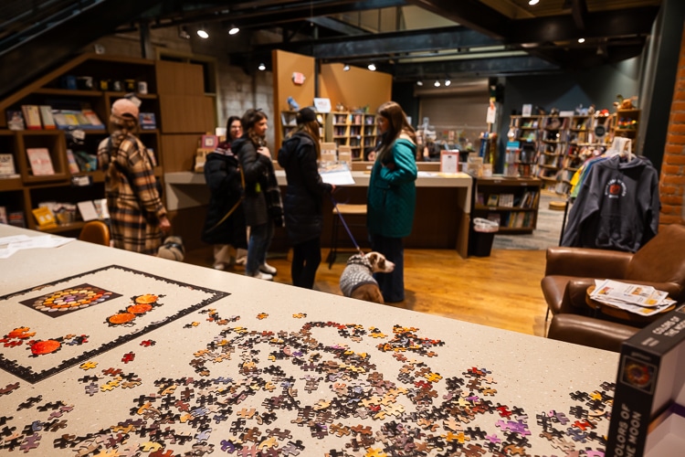 Puzzles, games, and people gathering to chat at Farmington’s Road Less Traveled bookstore. David Lewinski.