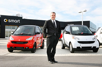 He knew the smart fortwo – at just over eight feet long and five feet wide, a weehicle by any measure – was his for the taking. He’d already comfortably slid his six-three, 400-pound frame into the two-seater on display at the Detroit auto show.