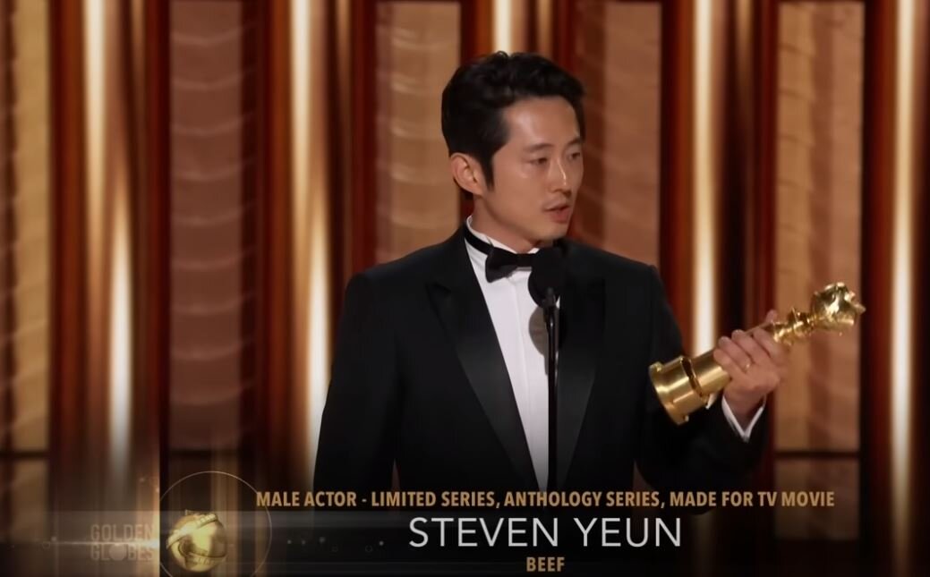 Actor Steven Yeun, who grew up in Troy, Michigan, won a Golden Globe on Sunday for his role in “Beef,” the Netflix TV series he starred in alongside Ali Wong, who also was awarded.