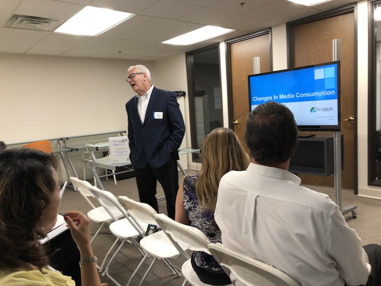 In an adjacent room, jacapps president Paul Jacobs shared the results of recently-published research about how people are using technology in their daily lives. With smartphone ownership at 90 percent, Jacobs says the only person who doesn’t have this technology “is Aunt Mildred, if she is over 90 years old.” Like Zalesin, Jacobs shared the explosion of voice-controlled tech.