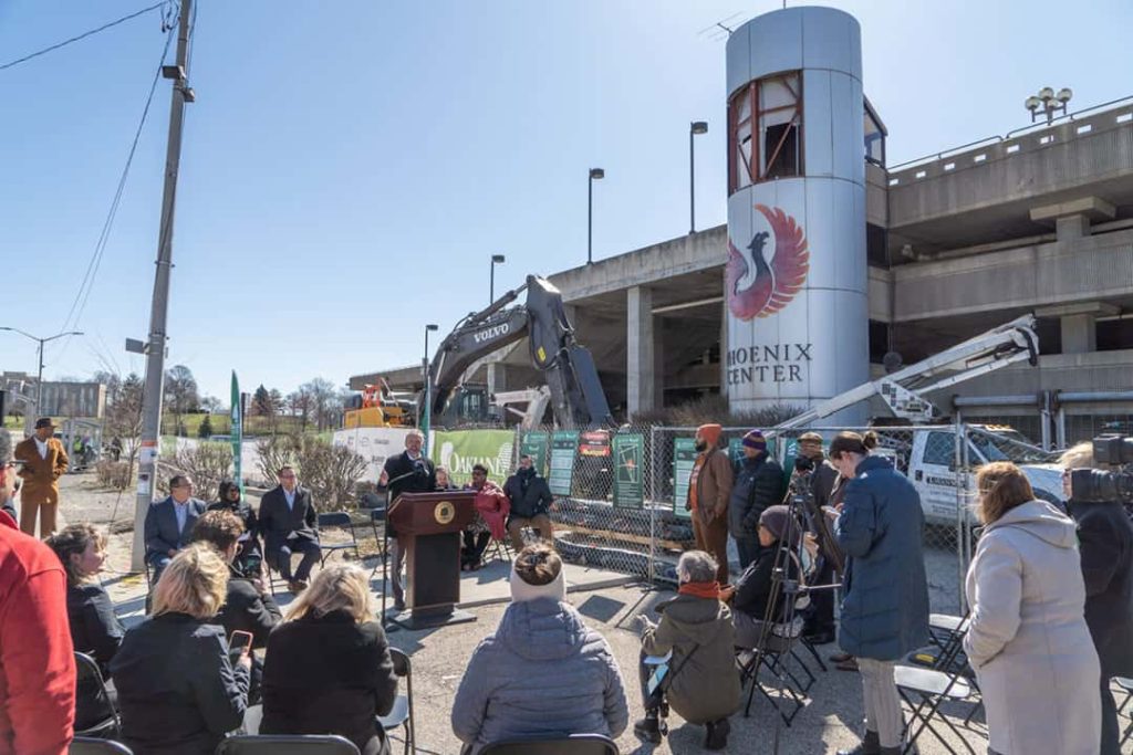 The aging Phoenix Center Garage, once seen as a symbol of Pontiac’s stalled redevelopment, was demolished earlier this year. Carlson says new parking structures will soon rise in its place, setting the stage for a modernized government campus that integrates state and county services in a more accessible, pedestrian-friendly environment.