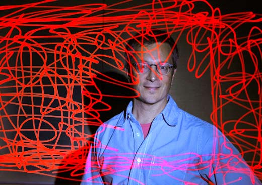 Doodlers are known to slip into a mild trance while scribbling, but it’s not a thoughtless state, Helland says. “People ask me what I think about when I doodle. I could be thinking about anything. When I grew up I had a cat. When you were teasing the cat or had its attention, his tail was always doing something else. Or the cat was looking out the window and you’d try to touch its tail, but it senses you there. It’s as though the cat and the tail think separately. Sometimes that’s how I feel. I could be engaged with my head and my focus, but my hand is doing something else…”