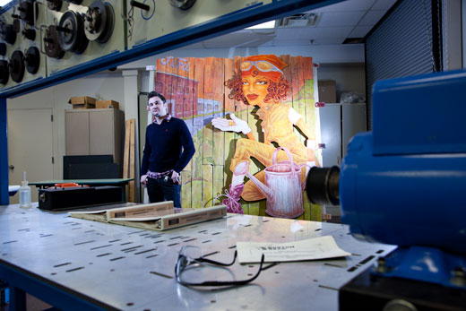 With his new-found creative freedom, Roko has begun a series of installation pieces that celebrate Detroit’s automotive history while also nodding towards its transition into the future. The first such piece features an African American woman (an automotive worker) planting seeds in front of an old Albert Khan building — past and present colliding to create something new. Roko intends it to be symbolic of Ford’s comeback and shift in thinking: “It’s really a new company on a lot of levels. They have a new way of thinking and I really tried to put that in this piece.”