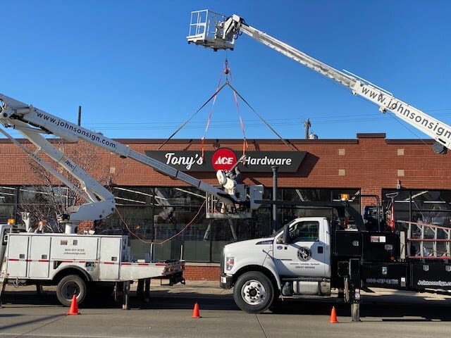 What’s old is new again for Hazel Park’s longest-running business, Tony’s Ace Hardware, which has been around in one form or another since 1936. With a set of awnings scheduled to go up next week, the finishing touches on their facade renovations will be complete, an eye-catching project that has seen the family-owned business repair the building’s decades-old walls, restore the original brick facade, and install brand new signage.
