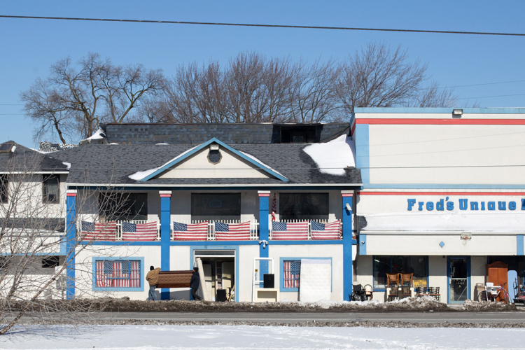 The furniture store is not a traditional showroom (consider yourself warned) but its cluttered collections include hotel liquidation furniture, and gently-used office furniture so a lot of businesses turn to Fred’s to outfit a new place. The owners of Bobcat Bonnie’s cafe in Wyandotte even created a striking wall mural of kitchen items (pots, pans and trays) from what they found at Fred’s Warren location.