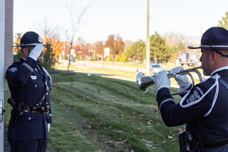 A 21-gun salute from the Sterling Heights Police Honor Guard.