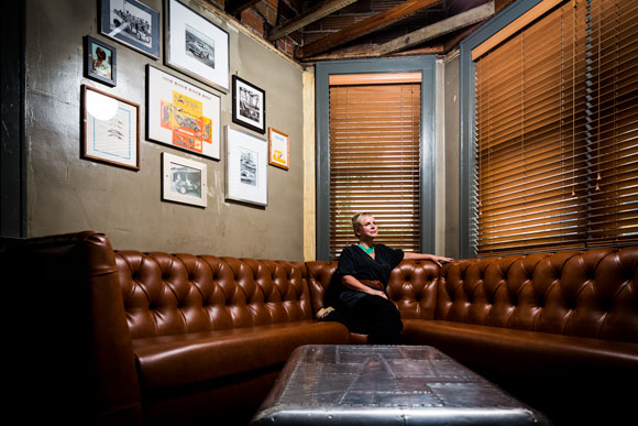 “My whole thing with the space was about taking this raw garage and warming it up. So with the booths you have the caramel colors. The bar stools, you have the leather that’s a little more sumptuous, and I wanted elements in there that were more organic, like wood. The way I looked at it was to still have the patina and the layers that were present in the garage without erasing the garage’s original purpose. I feel like it’s a fine line where you weren’t taking over too much to allow the history to be present and also make it comfortable.”