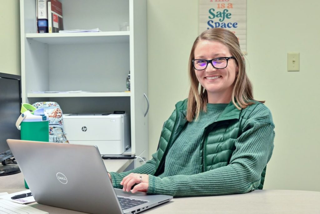 Summit Pointe outpatient therapist Bailee AcMoody helps care for the surge of clients that rely on Summit Pointe post-Covid.
