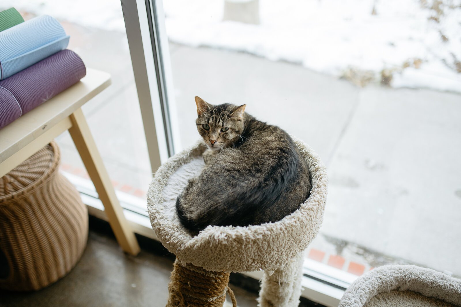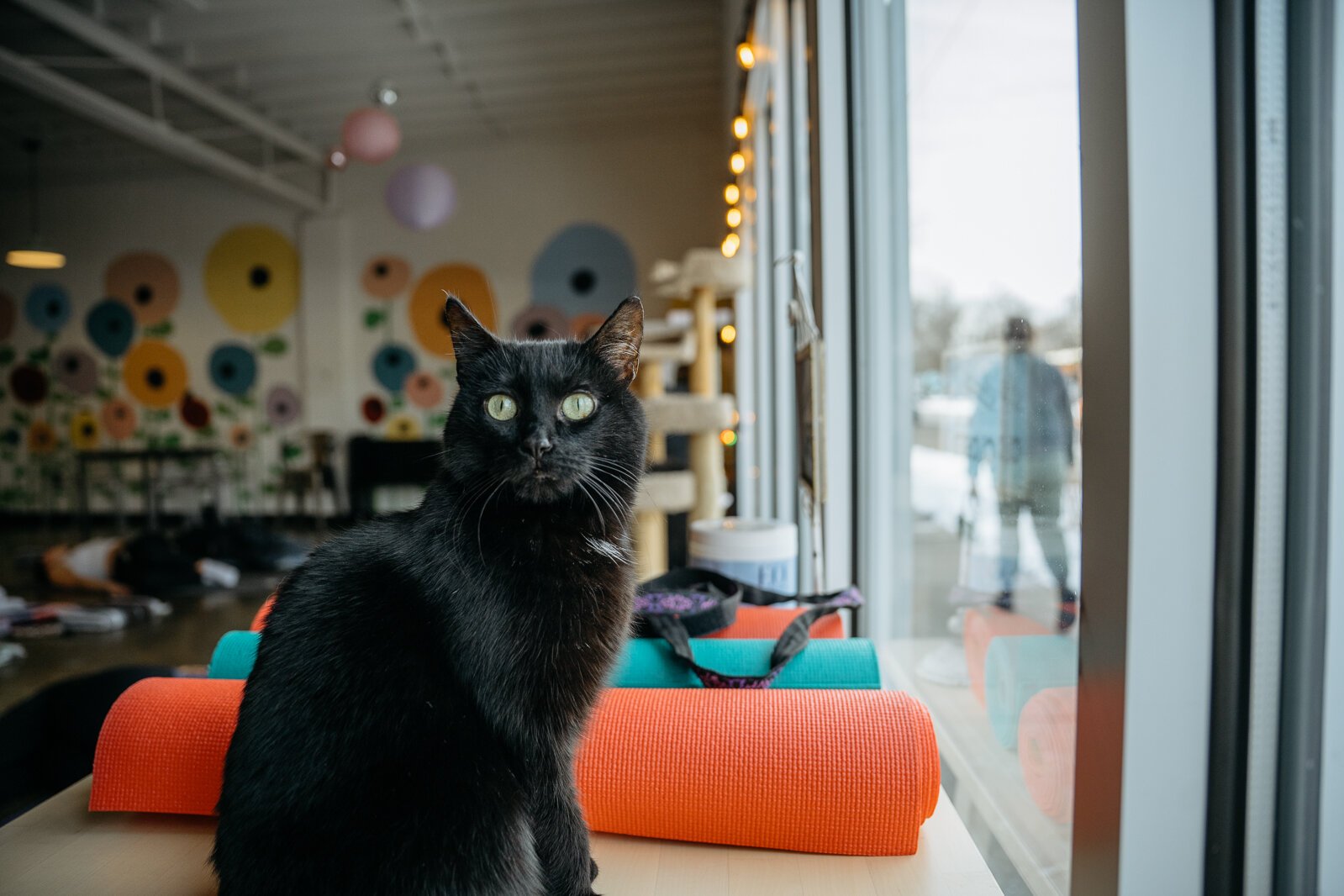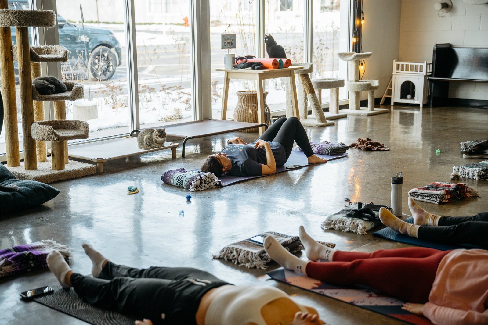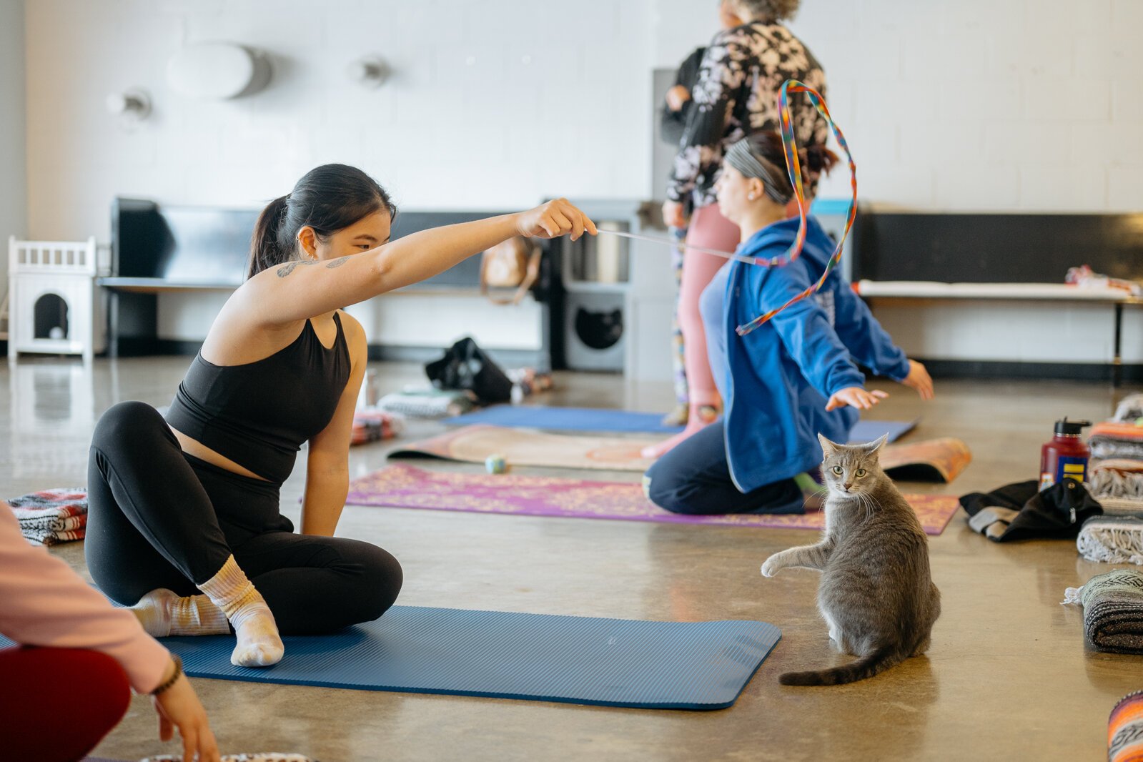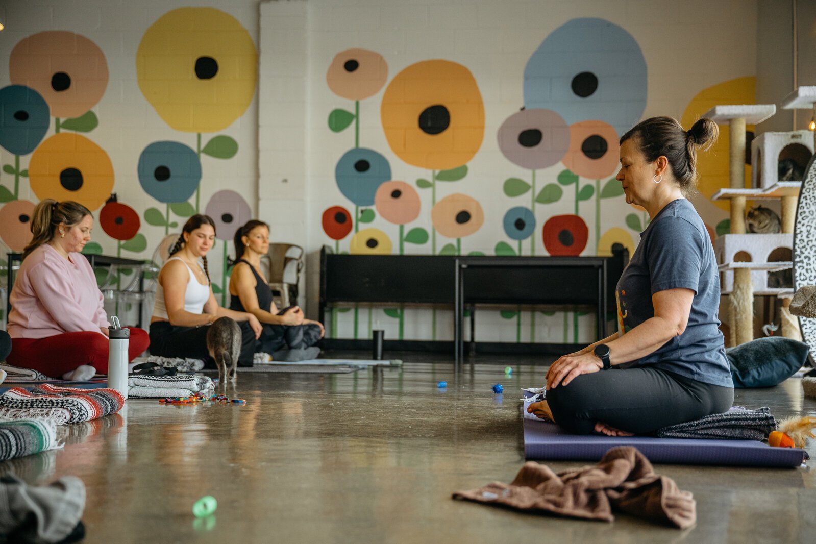 ”People bring their own mats, and it’s in the actual shelter space. They clear out all the furniture and you’re in the space where the shelter cats move around and can roam around.”