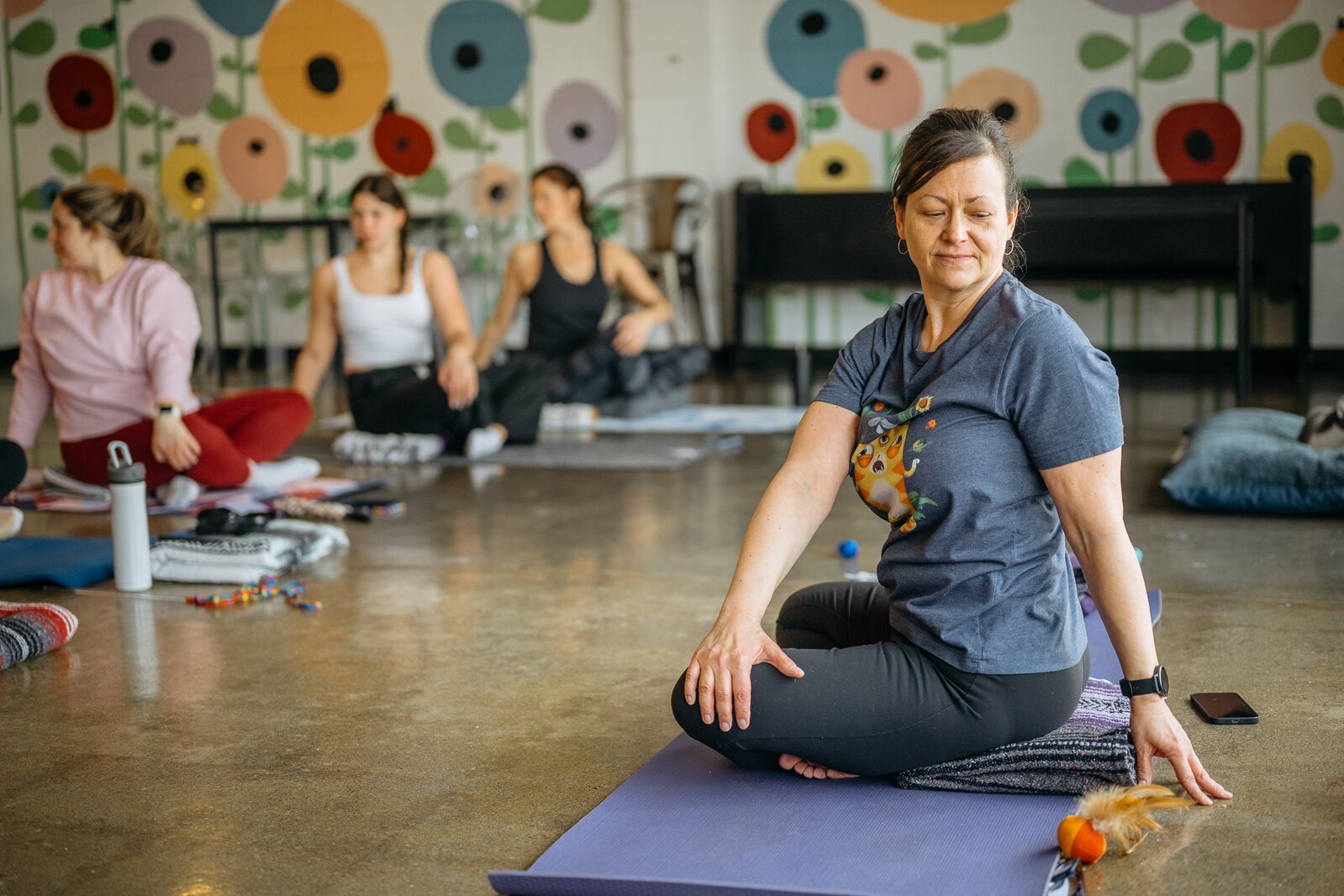 Each session is a mix of age ranges, abilities, first-timers and repeat yogis.